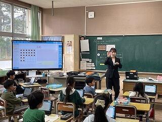 11月19日(火)2学年算数科かけざんの研究授業がありました。縦横が同じ数ずつ並んでいないおかしの数を掛け算をつかってどのように求めるかを考えていく授業でした。子どもたちはタブレットにおくられたおかしの図をいくつかのまとまりごとに〇で囲み、まとまりがいくつあるかを掛け算で求め、後からたしていきました。途中、自分の考えをタブレットを見せ合いながら、ペアで伝えあったり、全体の話合いで、図をもとに式の方法をみんなで考えたりする姿が見られ、本校で研究している対話場面がたくさん見られる学習でした。授業後は、全職員で本時の授業について意見交換し、授業の腕をみんなで磨いていきました。よい検証授業でした!2年生が時間いっぱい頑張る姿が見れてよかったです。