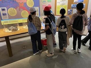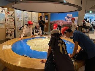 見学地4「桜島ビジターセンター」の様子です。動画で桜島の成り立ちを確認したり、展示物で桜島の地形や溶岩などを学んだりすることができました。