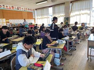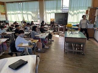 5年生は、外国語科の時間では「Can you~?」の尋ね方を習い、ペアで交流していました。楽しく活動できていました!音楽科では「ハロー・シャイニングブルー」の合奏をしていました。パート別に分かれて歌う練習をし、その後、合わせて歌っていましたが、ハーモニーがとても美しく、その声が廊下をつたって広がり学校中がすてきな音に包まれました!いい歌です!保護者の皆さまにも聞かせてあげたいくらいです。理科では台風がどのように発生するか、また台風でどのような災害が起きるかを動画を視聴しながら考えを深め、まとめをしていました。