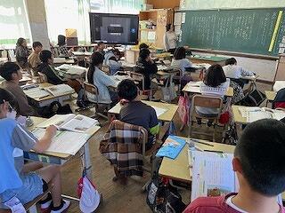 4年生は、国語科「ごんぎつね」の学習では、場面と場面を比較して、ごんの気持ちの変化に気付かせたり、算数科では計算練習をして、全部クリアした子どもがお助けマンになって、友だちに解き方をアドバイスしたりする姿が見られました。理科の学習では、月の位置や動きについて動画を見ながら確認していました。月も太陽と同じように、東から南の空を通って、西に沈むことを知り、びっくりしていました。