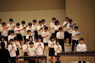 1年生が楽しそうに音楽の勉強をしています。みんな、歌をうたったり、鍵盤ハーモニカの演奏をしたりするのが大好きなようで、音楽の時間はみんな、にこにこしていますよ。