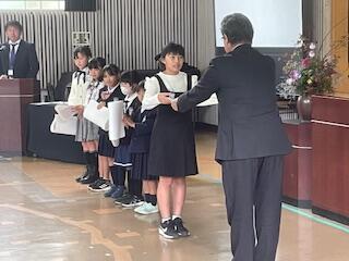 10月28日(月)、陸上大会で8位入賞を果たした6年生に校長室で賞状を手渡しました。