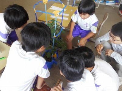 ミニトマトの成長をみんなで観察して、作文を書いていました。