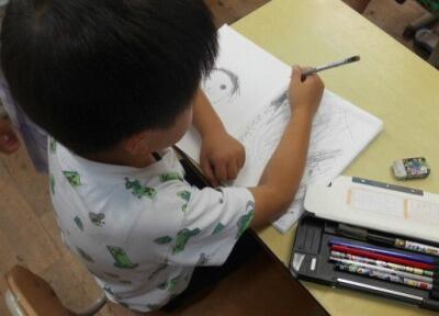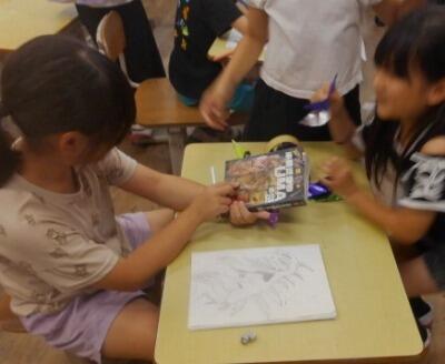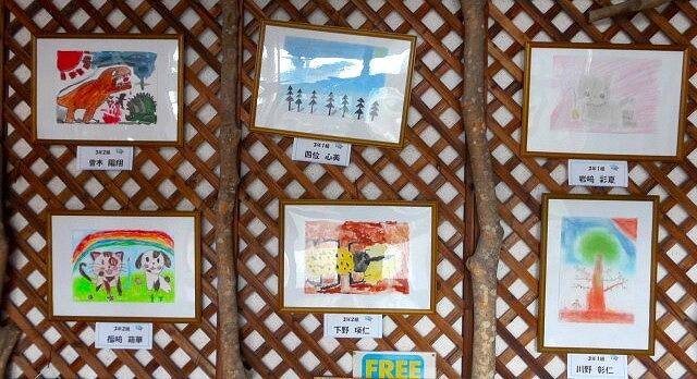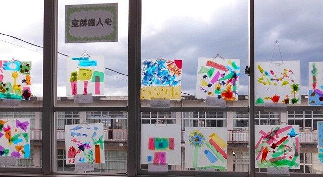 4年生の作品は、中校舎の少人数教室にも掲示されています。