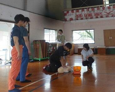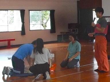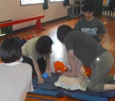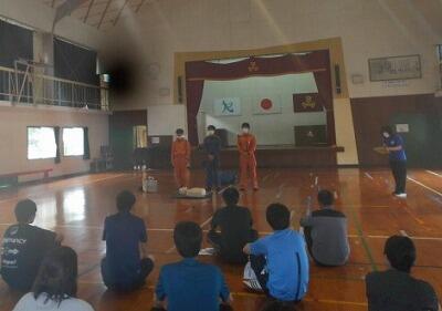 今週の職員研修で、西諸広域消防署から3名講師として来校いただき「救急法講習」を行いました。4月には、緊急事態発生時に職員が連携して対応し、子供の命を守るための「シミュレーション研修」を行いました。今回は、水泳指導の前に、心肺蘇生法やAEDの使い方、実際の役割や動きを確認しながら訓練をしました。緊急の場合でも、職員が連携して迅速かつ適切に対応できるよう努めていきたいと考えています。