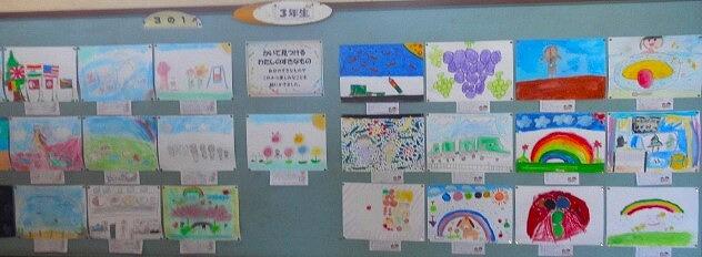 明日は、参観日です。廊下や階段等の掲示コーナーには、子供たちががんばった作品がたくさん掲示されています。明日の参観日の時にぜひご覧ください!