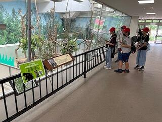 見学地3「平川動物園」の様子です。活動班で仲良く動物たちを見て回っていました。カメラで自分たちは撮らず夢中になって動物を撮影していました。全部見終わったら、遊具(乗り物)にのってもいいことになっていたので、後半はダッシュになった班もいたようです!