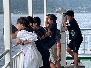 フェリー乗船の様子です。雨天だったら中止も検討していましたが、ラッキーなことに天候はくずれず予定通り乗船できました。桜島が噴火しているところを、船に乗りながらみることができました。風がとても気持ちよかったです!
