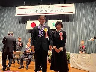 11月3日(日)、小林市市民表彰式がありました。今年度4名の方が表彰されましたが、その中のおひとりに、三松地区から「福留健一様」が受賞されました。三松地区の見守り隊の活動や地域だけでなく県内全域で講演活動を行い、生涯学習の発展に努められたことが称されての受賞でした。福留様は、今現在も三松小の正門に毎朝立たれ、子どもたちにやさしい言葉かけをしてくださっています。受賞、本当におめでとうございます。