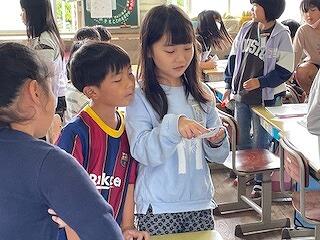 6年生は外国語科でペアで英会話の練習をしたり、理科の学習では、地層にある岩石の種類を標本で確認していました。