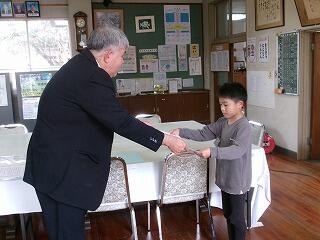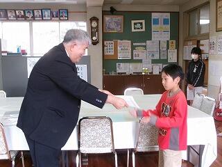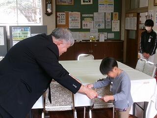 3月6日(木)つつみ学級に招待され教室に行くと、1・2年生のつつみ学級の子どもたちがとってもいい姿勢で待っていました。校長の私に何かプレゼントをしてくれました。袋の中をのぞいてみると水菜でした。子どもたちがここまで育て、収穫し、感謝の言葉と一緒にくれました。子どもたちのやさしい気持ちがとってもうれしかったです。
