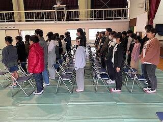 卒業式に向かう心構えについて話し合った後、式の流れを確認し、最後に歌の練習をしました。校長として、小学校生活6年間1200日でもっとも美しく輝かしい姿を見せてほしい!式で「有終の美」を飾るために、式練習という最後で最大の学びに挑んでほしい!また、卒業式のもう1つの目的として、6年間支えてくださった先生方、おうちの方々、そして友達への感謝の気持ちを伝える大切な場でもある。全員で感動の卒業式をつくりあげてほしいと話しました!初日の練習としてはとっても気合の入った練習態度でした!
