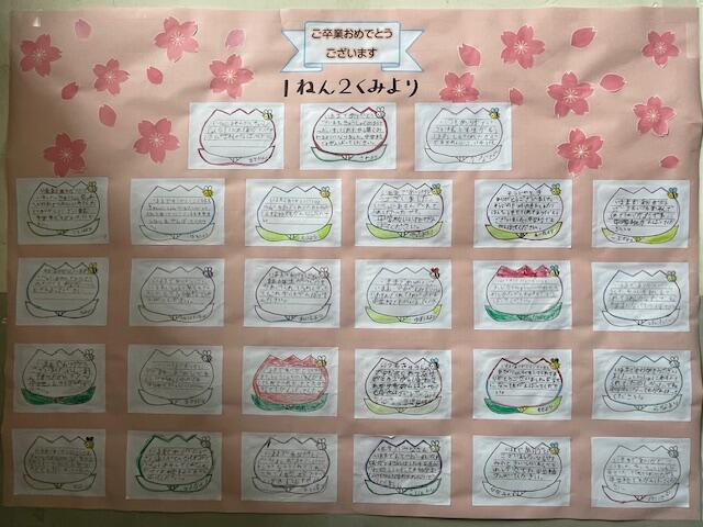 卒業式に参加しない1~4年生からのメッセージの数々です!思いが込められてますね!