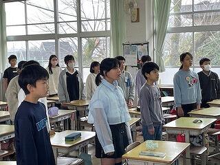 3月5日(水)全校朝会がありました。校長の話では「有終の美をかざる」という話をしました。6年生は卒業まで14日、1~5年生は修了まで15日しかなくなった今!「終わりをかっこよくするために」次の3つのことを話しました。1つめは「自分がたてた目標を達成する、最後まで続ける」2つめは「できていないことにチャレンジする」3つめは「場をきれいにする」です。終わりをしっかり締めくくることができたら、次年度、進級、進学した時にいいスタートが切れるので、終わりよければすべてよしとなるよう、一人一人、がんばってほしいです。その後、学習担当からは、今月の生活目標「学年のまとめをしよう」について、学習のきまり等で1年間指導してきたことの総まとめ的な話がありました。①目・耳・心で話を聞こう②1分前着席・黙想(立腰)③3ふでばこが100点である(中身が揃っている)④発言リレーを使って話し合う、などです。残りの日々で、しっかり学年のまとめの学習に取り組み、その学年で身に付けるべきことをしっかり定着できるように頑張ってほしいと思います。