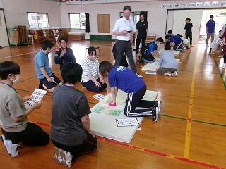 6月12日(水)、三松中学校の先生方とともに、全職員で救急救命講習を行いました。講師として小林中央消防署の皆様におこしいただきました。講習会では心臓が止まったときの体に起こる影響のメカニズムや心肺蘇生法を行う意義等の理論面の説明、胸骨圧迫(心臓マッサージ)の仕方やAEDの使い方等の技能面も含め、丁寧に教えていただき、実技指導もしていただきました。「いざという時のために」知識と技能を学ぶことができました。講習の最後にみた動画(AEDや心肺蘇生法を行わなかったために亡くなった子どもの事例)には涙がでました。学校ではもうすぐプール開きが行われ、これから本格的に水泳シーズンを迎えます。事故のないよう安全に気をつけながら授業を行うとともに、もしものときは、本日の講習をいかして、迅速かつ的確に対処したいと思います。