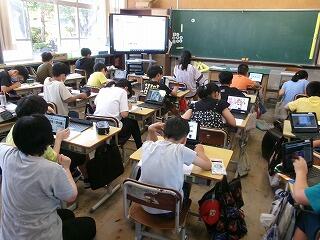 3年生はテスト中のようでした。早く終わったらタブレットで、ドリル学習をしていました。