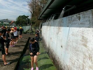 7月17日(水)今日は1年生のプール納会(プール学習最終日)でした。これまで約3週間の水遊び学習の成果が見られました。低学年のプールでの学習(水遊び)の内容は主に①水の中を移動する運動遊び、②もぐる・浮く運動遊びとなっています。今日の納会ではその動きを確認することができました。