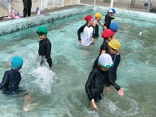学習の後はみんな、「楽しかった~!」とうれしそうに報告してくれました。顔もつけられなかった子どもたちが楽しそうにプールで学ぶ姿に感動しました。みんな、水とともだちになれました!がんばりました!