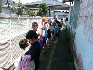 こいにえさをあげたり、木や草むらで生き物探しをしたり、何か発見があると、わたしに見せてくれます。せみの抜け殻やカブトムシ、クワガタ、ショウリョウバッタ、ダンゴムシ、、、たくさんの発見があったようです。自然豊かな三松小ならではの光景ですね!