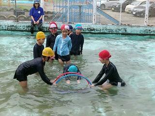2年生はビート版をつかって浮き遊びやフラフープのトンネルで輪くぐりをしていました!みんな、水をこわがらずにチャレンジしていました!