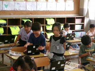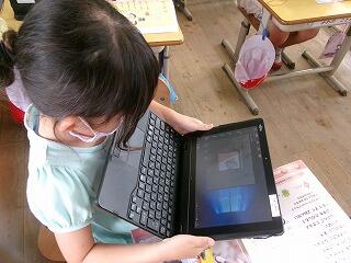 生活科の学習の様子です。生活科の教科書に出てくるQRコードをカメラで読み取らせて動画をみていました。すごいですね!