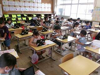 1年生はタブレットに文字を書く活動をしていました。ノート機能をつかって勉強するのはこれが初めてのようですが、先生の説明を真剣に聞きながら、1つ1つの機能を覚えていました。