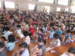 その後、生徒指導主事が夏休みの生活の在り方について話をしました。37日間、命を大切に過ごすこと、そのために、「ひ(火遊び)・み(水の事故)・こ(交通事故)・む(むだづかい)・し(しらない人についていかない)」のきまりを守ることを再確認しました。「安全第一・正しい判断をこころがけるように!」の言葉で締めくくりました。詳しくは、「夏休みのしおり」を配付していますので、よく読んでおいてください。