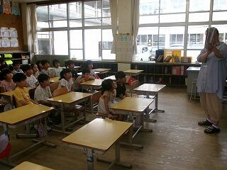 1年生は片付けの仕方について、学んでいました。きっとこれから、机の中はいつもきれいでしょう。もちろん、お家の机もですね!