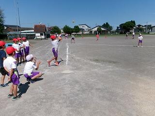 外スポーツクラブの様子です。ベースボール型ゲームを楽しんでいました。チームで協力してプレイし、たくさん点数が入っていました。大谷選手にも負けていません!