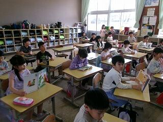 2年生と4年生の様子です。2年生は、読書や算数、今日から始まる給食当番の活動の流れなどを確認していました。4年生は、理科のオリエンテーション的な学習や、自己紹介カードの作成、外国語活動の学習の準備をしていました。
