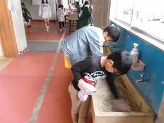 4月11日(木)に大掃除がありました。これから1年、気持ちよく学習するために、そして、明日から入学する1年生のために、2年生から6年生までが心を1つに、時間いっぱい活動しました。三松小学校では、上学年と下学年児童が班員として構成される縦割り清掃班編成をしており、上学年のリーダーシップ力を育て、下学年はよいモデルを間近に見て活動に取り組めるようにしています。また、各担当場所の先生方も児童と一緒に清掃に取り組んでいて、とってもさわやかな印象を受けました。歴史のある校舎、体育館を、このようにしてみんなで大切につないできたんですね!