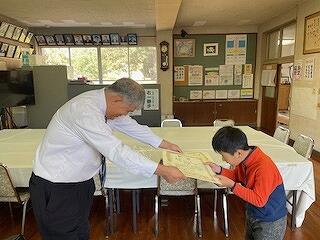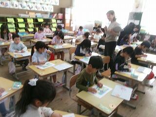 3年生は、国語科で漢字の意味の学習をしていました。例えば、「はははははじょうぶです。」を意味が伝わるように漢字をつかって表したり、キシャ(記者、汽車)、カジ(家事、火事)など同音異義語を使い分けて文をつくったりしていました。外国語活動では世界のいろいろなグリーティングカードをみながら、誰に贈りたいかを話し合っていました。(かぞく~!)と発言する声が多かったです。