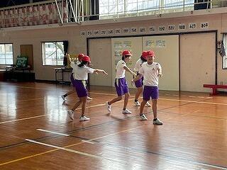 3年生は体育館でボール運びリレーをしていました。「がんばれ~!」と自分のチーム関係なく応援する姿がみられました。