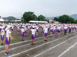 5月22日、運動会前、最後の全校体育がありました。まず初めに、閉会式の動きの確認をし、その後、開会式、そして、全校リレーという流れで練習をしました。