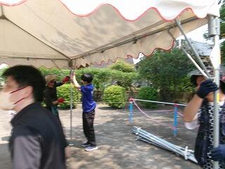 テントの下でも、まっすぐ一列に椅子を並べ、静かに待っていました!