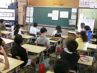 7月2日(火)、外国語専科の先生が初期研修として研究授業を行いました。新規採用職員は初期研修に2年間取り組むことが義務付けられており、研究授業を6回行わないといけません。今日はその記念すべき第1回目の授業でした。授業では最初にグリーティングをしました。グリーティングというのはあいさつのことです。今日の天気は?調子は?今日は何日?何曜日?などを伝え合い、外国語科の学習をする雰囲気づくりをしました。ALTのレイン先生の質問に子どもたちは自信をもってこたえていました。