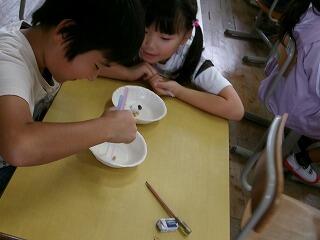 ペアで交互に練習し、一方がするとき、ペアの相手は応援係になって「がんばれ~!」と声をかけました。応援されると俄然張り切る子どもたち!ほんのわずかな時間の練習でしたが、みんなとても上手につまめるようになりました。