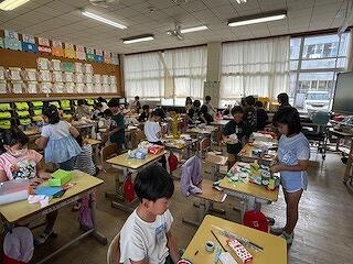 5年生は家庭科室で、裁縫をしていました。なみ縫いや返し縫いなどをしながら、小物をつくっていました。完成したら生活場面で使うのが楽しみでしょうね!誰かにプレゼントするのもよいかも!