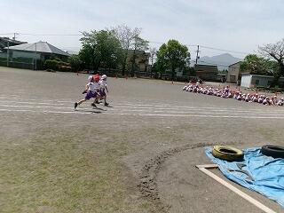 運動場では水たまりのないところで、かけっこの練習をしていました。運動会までもう、1か月ですものね!