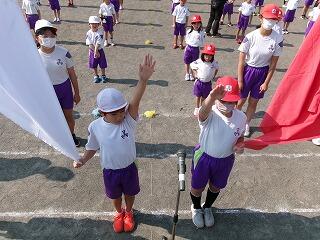 恒例のエール交換及び応援合戦は、どちらの団も甲乙つけがたい素晴らしい内容でした。三松小ならではでしょうか?リーダーだけでなく、団員も全員立って(団が1つになって)、声を振り絞り、団を鼓舞し応援する姿、運動会勝利に向かう熱い気持ち、情熱を感じました!昼休みを返上して、毎日団長・リーダーが集まって、こつこつ自主練してきた成果だったと思います。みんなの心を動かしました!