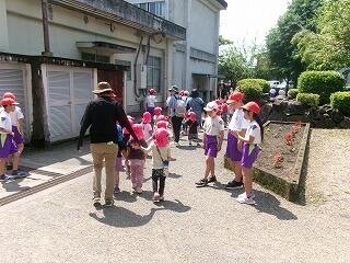 いろいろな教室を回りながら、ここはどんな教室かなあ?と、ドキドキ、わくわくしながら、お部屋の中をのぞきこんでいました!「校長室にはキラキラしたものがいっぱいあるぅ!わ~!」とうれしそうに話していました!近いうちに、今度は一つ年上の2年生が学校を案内してくれるんだそうです!楽しみですね!