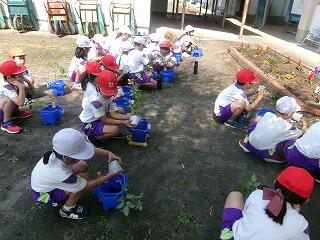 2年生はトマトの苗を植木鉢に植えていました。先生の教えをよく聞いて、丁寧に作業を進めていました。実るのが楽しみなようで、早く食べた~い!って言ってましたよ!