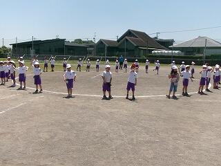 5月22日、運動会前、最後の全校体育がありました。まず初めに、閉会式の動きの確認をし、その後、開会式、そして、全校リレーという流れで練習をしました。