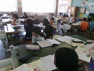 4年生は算数科ではグラフの学習のまとめのプリントに取り組んだり、わり算の筆算の基本的な考え方を整理したりしていました。理科の学習では晴れの日と雨の日とで、気温がどのように変化するの予想していました。天気予報を確認しながら、来週、最低でも2日かけて、調査するようです。楽しみですね!