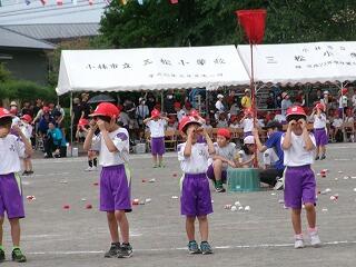 競技の部ではかけっこ・リレーなどの「走」では1位の子どもはぶっちぎりでゴールを駆け抜け、2位以下の子どもは前の選手の背中を最後まで追いかける姿が見られました。団技の部では1年生は「玉入れ」をしましたが、競技の前に踊ったマルモリダンスがとってもかわいかったですね。でも、いざ競技が始まると、みんな真剣に中央の籠を目がけて、おじゃみを投げ入れ、大接戦でした!後片付けまでみんなで協力して、すばやくできてすばらしかったです。2年生は「大玉転がし」をしました。風のせいで思うように大玉が転がらない場面もありましたが、チームで力を合わせ、何とか次につなぐ姿が見られました。抜きつ抜かれつのデットヒートでした。4年生の団技は台風の目「三松っ子タイフーン」でした。予行では、コーンを回ったり、団で小さくまとまって棒を跳び越えたりすることがうまくできませんでしたが、根気強く反復練習をした結果、今日は赤団も白団も、 キビキビと動き、ゴールするまでの時間がとても速くてびっくりしました。こちらも大接戦でした!6年生の三松ンピックは、最後の29人30脚まで勝敗がもつれ、タッチの差で白団が勝ちました。クラスが1つの塊になって、みんなで声を掛け合い、一列に並んで前進する姿はクラスの絆を感じ、とっても感動的でした。6年生の親子団技も白熱しました!親子で風船を挟み、ちょっぴり照れくささもあったでしょうが、ギュッとしてバーン!としたことはきっと一生の思い出になるでしょう。「表現」では3年生のジョイフルは、リズムにのって、ボンボンをふりふり、笑顔いっぱいで踊る姿が見られ、とってもかわいいダンスでした。最後の隊形移動も見事でした!練習の成果がバッチリでていましたね。5年生のソーラン節は気合が入っていましたね。私の目では今日が今までで一番の出来でした。衣装の着替えも素早くでき、「どっこいしょ、どっこいしょ」「ソーラン、ソーラン」と掛け声をかけて踊る姿はとっても勇敢でした!翔舞会の皆様のご指導の下、三松小の伝統を受け継ぎ、今年も踊りを披露することができてよかったです。
