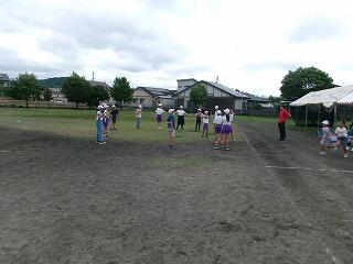 1年生は運動場で、まる~く輪になることや、マルモリダンスの練習をしていました。雲一つない青空のもと、気持ちよさそうに活動していました。