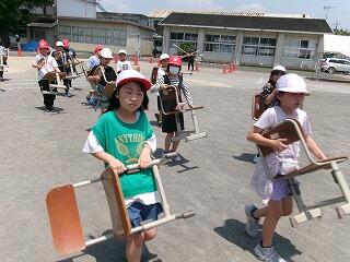 事情を聞くと、明日の運動会なので、団のテントの下に児童用の椅子を運ぶんだそうです。みんなが教室から外に出て、そろってから移動するんだそうです!先生のいうことをきちんと守り、勝手な行動をしない姿、立派です!