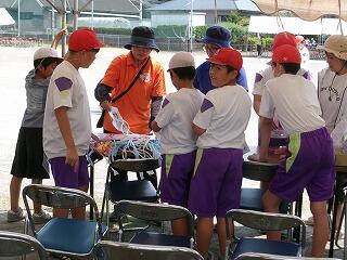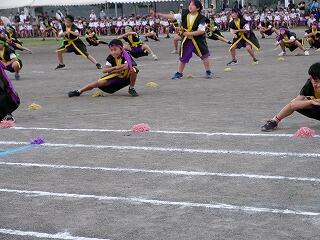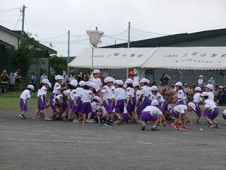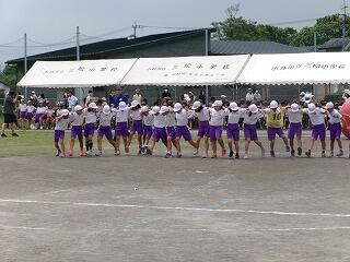 恒例のエール交換及び応援合戦は、どちらの団も甲乙つけがたい素晴らしい内容でした。三松小ならではでしょうか?リーダーだけでなく、団員も全員立って(団が1つになって)、声を振り絞り、団を鼓舞し応援する姿、運動会勝利に向かう熱い気持ち、情熱を感じました!昼休みを返上して、毎日団長・リーダーが集まって、こつこつ自主練してきた成果だったと思います。みんなの心を動かしました!
