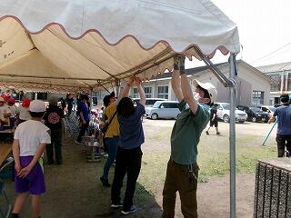 明日の運動会に向けて、6年生、保護者のボランティアの皆様、PTA役員の皆様にお集まりいただき、会場準備をしていただきました。おかげで、運動会の会場が整いました!ありがとうございます。あとは、本番を待つばかりです!天気予報では、雨の心配はなさそうで、何とか実施できそうです!(風がすこ~し、心配ですが、三松魂で、がんばりましょう!)