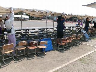 テントの下でも、まっすぐ一列に椅子を並べ、静かに待っていました!